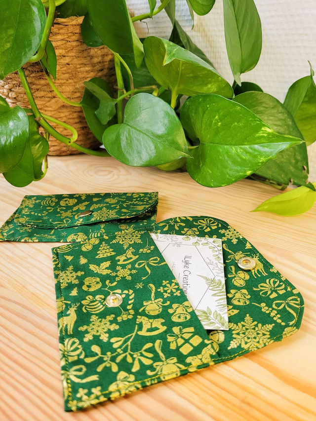 Porte-cartes en tissu, se fermant à l’aide d’un bouton-pression (couleur aléatoire) afin de maintenir vos cartes en place.