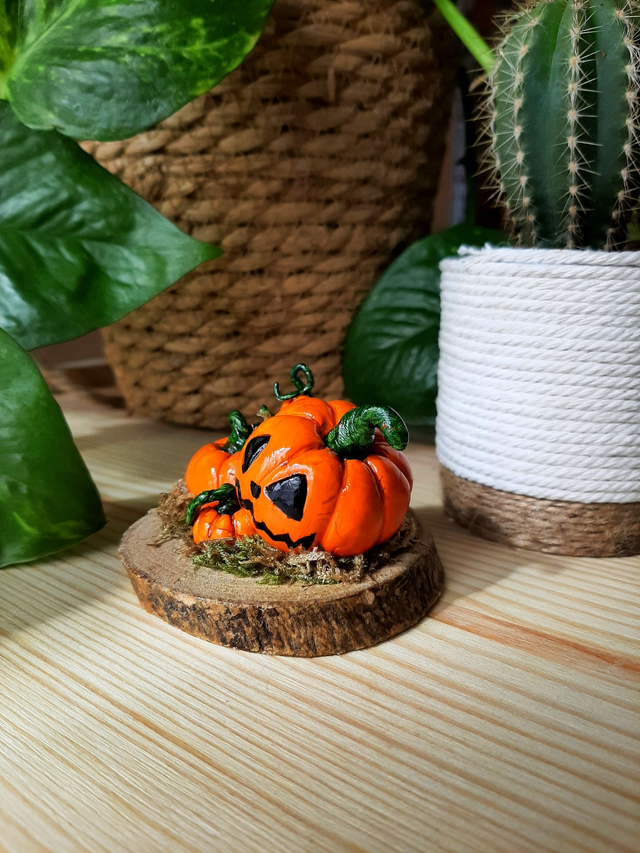 Réalisée en pâte polymère. Sculptée, peinte, vernie à la main.