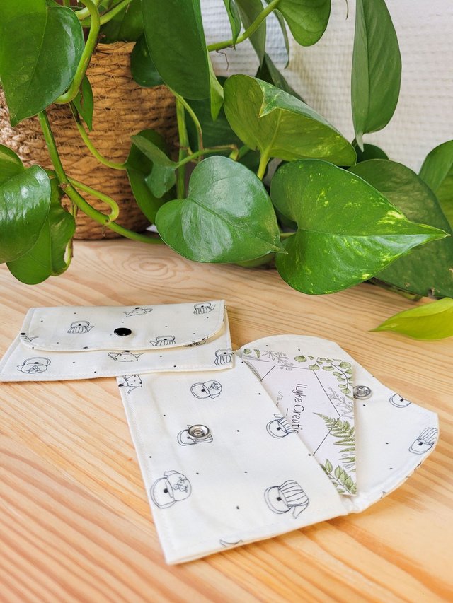 Porte-cartes en tissu, se fermant à l’aide d’un bouton-pression (couleur aléatoire) afin de maintenir vos cartes en place.